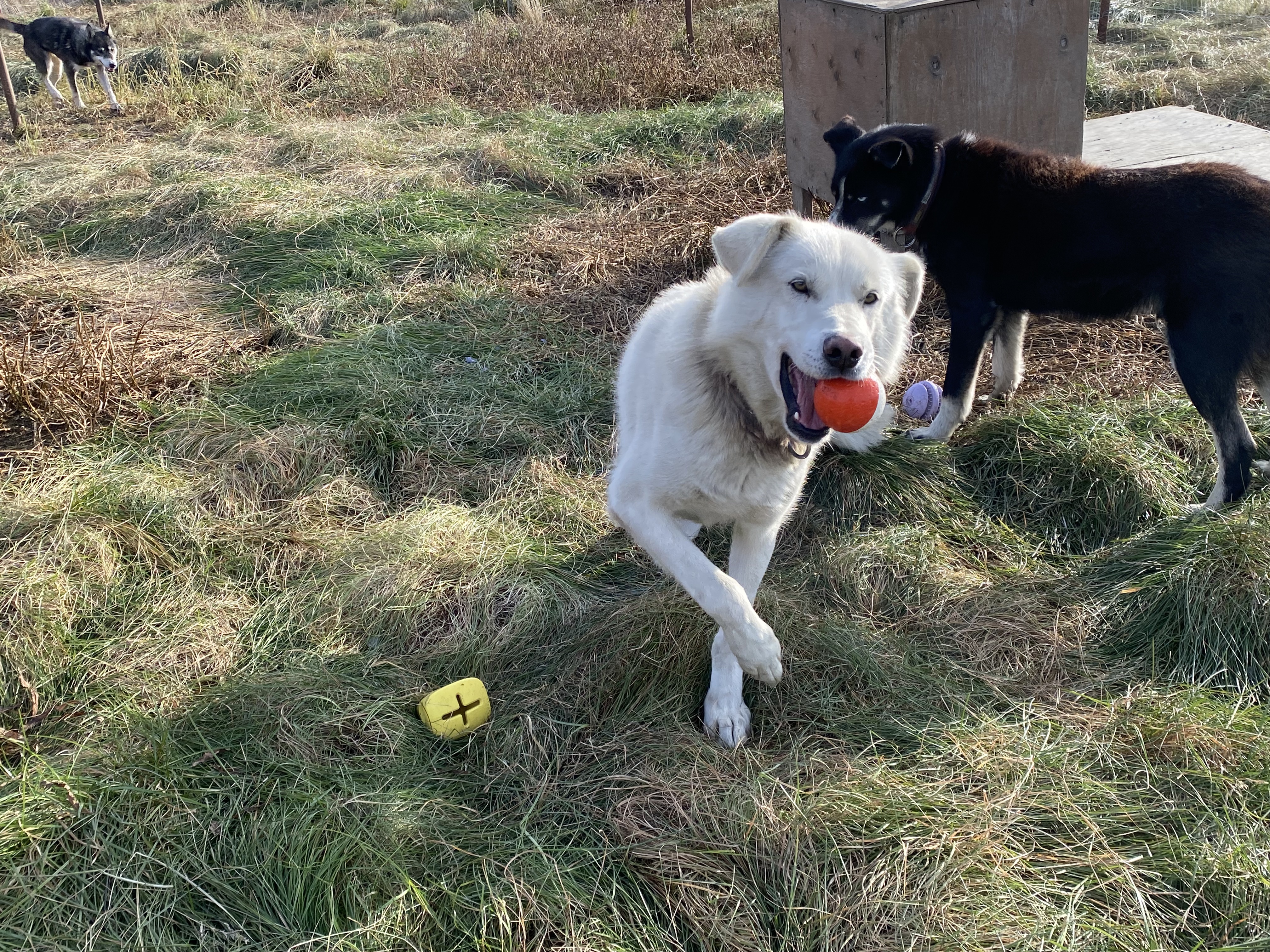 Relative Bill The Part Time Sled Dog came to the Comstock Kennel in 2023.Relative Bill was a rescue from Kotzebue who came to Nome via PAWS of Nome. Relative Bill is a big smart love who likes to pull the sled sometimes, but really enjoys peeing on things and playing. RB likes being in the house eating food bikejoring and hiking.